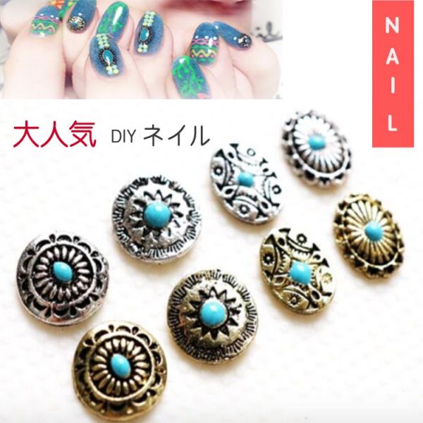 メタルパーツ ネイルジュエリー ネイルパーツ ゴールド シルバー ターコイズの小さめコンチョ ネイル ジェルネイル パーツ ターコイズ コンチョ ネイル用品 デコ ネイルアート ジェル シルバーパーツ ジェルネイルパーツ ストーン ラインストーン セル Nail Art ネイル